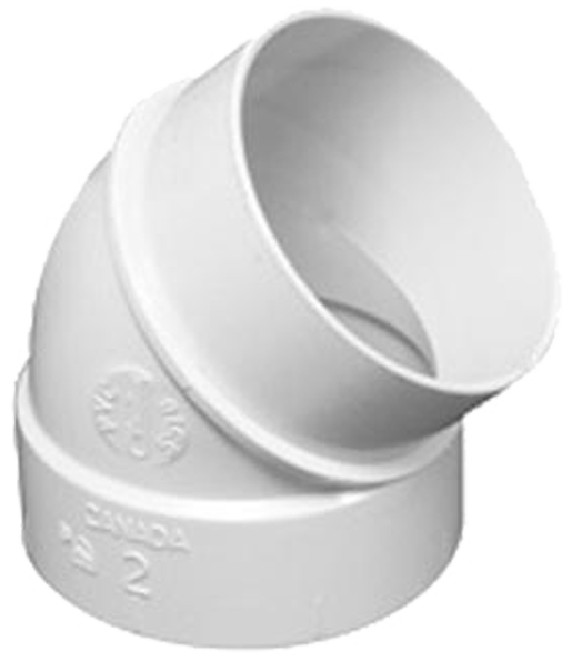 Kolano 45° nyplowe - umożliwia zmianę kierunku instalacji centralnego odkurzacza pod kątem 45 stopni. Stosowany również do omijania innych rur.