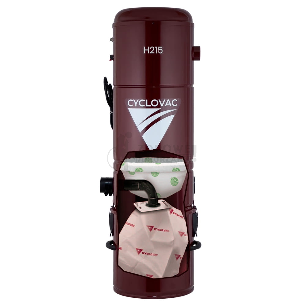 Odkurzacz centralny Cyclo Vac H215 to następca modelu 211 i jednocześnie najpopularniejszy model dla domów jednorodzinnych, która dzięki zastosowaniu wysokiej klasy silnika Ametek uzyskuje 33.83 kPa podciśnienia dzięki czemu skutecznie można czyścić także grube wykładziny czy dywany. Drugim istotnym parametrem odkurzaczy centralnych jest przepływ powietrza, model H215 uzyskuje wartość aż 60.5 l/s – to pozwala na wygodne i szybkie sprzątanie powierzchni twardych jak parkiet, panele czy ceramika – przy takich podłogach przepływ powietrza jest najistotniejszy. Wypadkową podciśnienia i przepływu powietrza jest tzw. moc ssąca odkurzacza, ta wartość w tym modelu wynosi 650 Air Watt przy mocy elektrycznej urządzenia na poziomie 1660 Watt.
