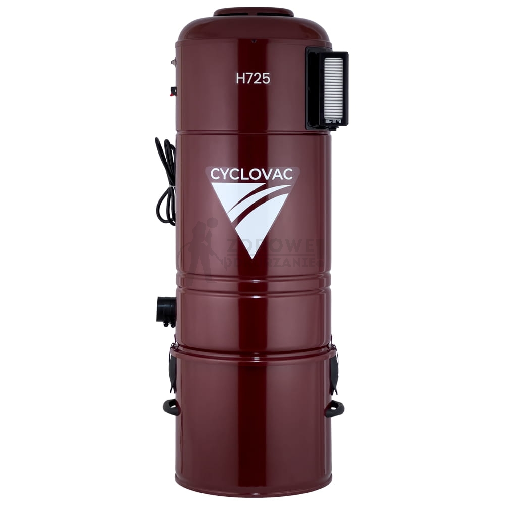 Na uwagę zasługuje także sposób filtracji, odkurzacz Cyclo Vac H725 wyposażony jest w cyklon + samoczyszczący się filtr HEPA pokryty powłoką teflonową oraz opcjonalnie wymienny filtr workowy, pozwala to na skuteczne oczyszczanie powietrza bez utraty mocy ssącej i bez konieczności wykonywania uciążliwych czy kosztownych czynności eksploatacyjnych.