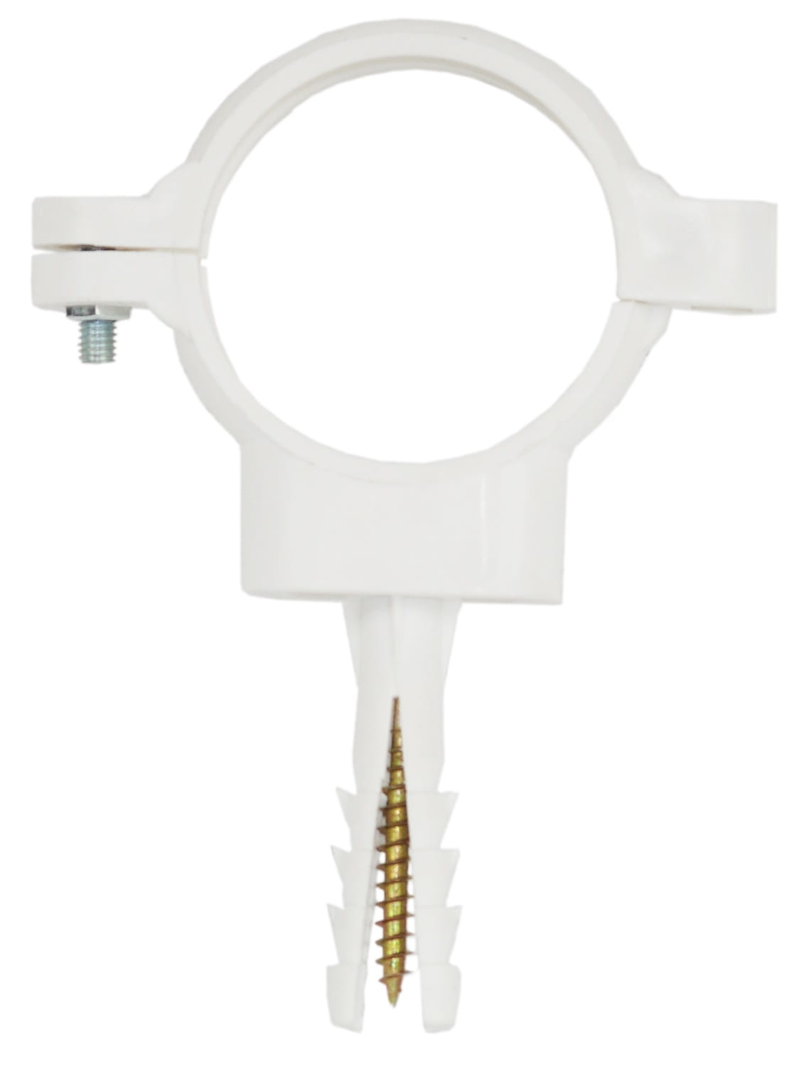 Uchwyt rury z śrubą i kołkiem służy do natynkowego montażu instalacji odkurzacza centralnego.